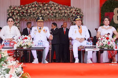 “Saya berharap Sulut tambah maju dan tambah hebat. Dengan pembuktian Pemerintah Provinsi Sulut melalui Gubernur mendapatkan bintang jasa utama dari Presiden Jokowi. Ini merupakan berkat kerjasama para semua masyarakat dan stakeholder terkait untuk membangun Sulawesi Utara, sehingga saat kita ulang tahun RI ke-78, kita mendapatkan penghargaan bintang jasa utama dari pak Presiden Jokowi. Penghargaan bintang jasa utama ini saya persembahkan untuk Sulawesi Utara,” kata Gubernur Olly Dondokambey usai memipin upacara HUT RI ke-78 di halaman Kantor Gubernur Sulut.